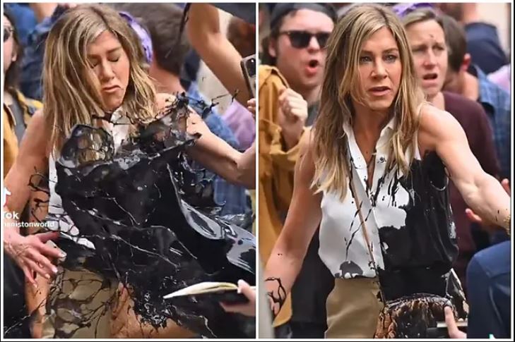 Pero de nuevo ha copado las redes sociales al viralizarse un vídeo en el que la arrojan lo que parece aceite. Jennifer, de 55 años, filmaba la temporada 4 de su éxito de Apple TV+, «The Morning Show», en Manhattan el domingo. La estrella de «Friends» parecía estar filmando una escena en la que su personaje, Alex, estaba rodeado de manifestantes.