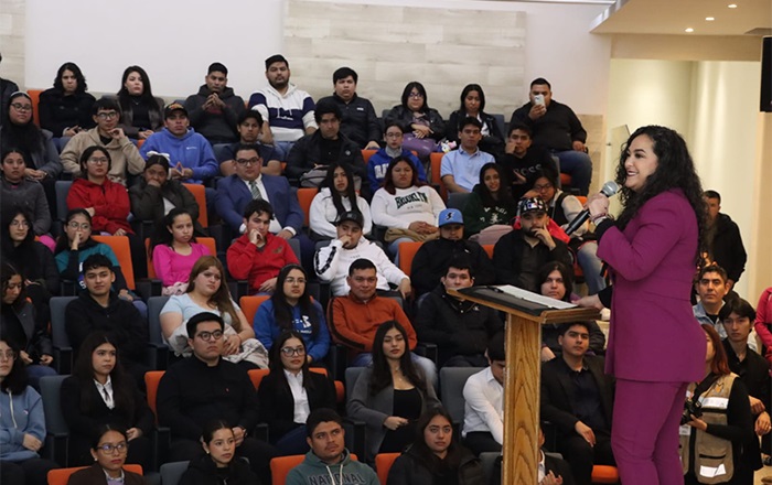 🔸 La senadora dio una charla a estudiantes de la Universidad México Americana del Norte, para compartir lo que ha sido su labor como integrante del Grupo Parlamentario de Morena LXVI Legislatura.