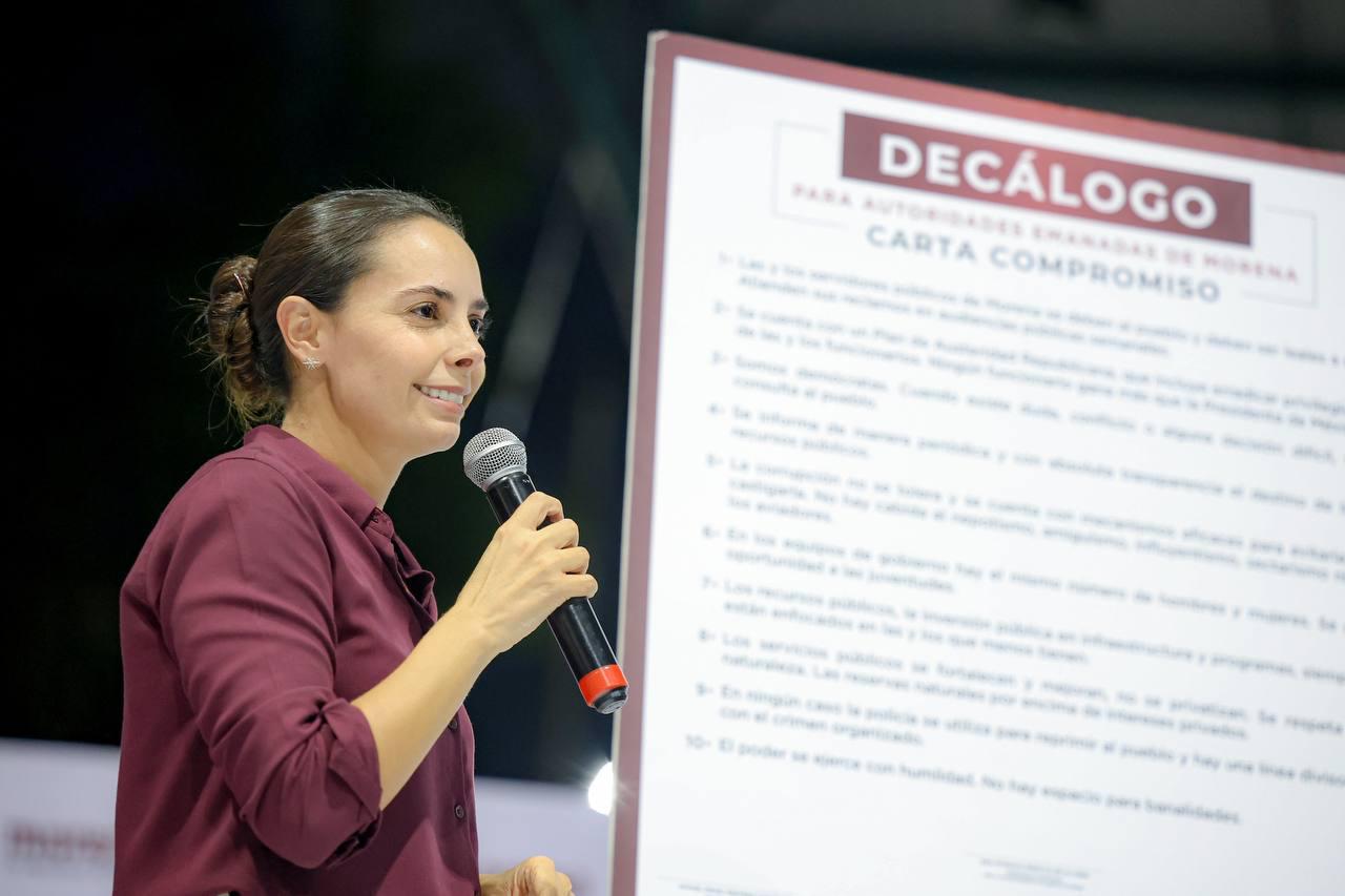 Cancún, Q. R.- Ana Paty Peralta, presidenta municipal de Benito Juárez, arropada por la dirigencia de Morena en Quintana Roo, consejeros estatales y municipales, así como por cientos de morenistas cancunenses, firmó junto con integrantes del Cabildo y su equipo de trabajo el decálogo del partido político Movimiento de Regeneración Nacional (Morena), refrendando 10 compromisos enfocados en la buena gobernanza y el bienestar del pueblo benitojuarense, destacando que ha formado parte de la familia guinda desde 2018, participando la primera legislatura de mayoría morenista.