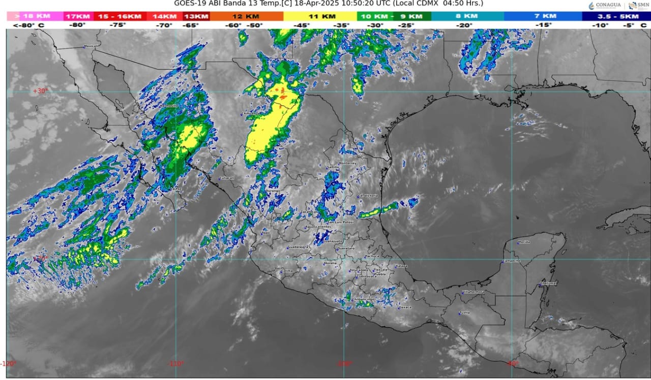 Por otra parte, una vaguada en altura sobre el noroeste del territorio nacional, en interacción con una línea seca sobre Coahuila y con las corrientes en chorro polar y subtropical, ocasionarán lluvias e intervalos de chubascos, así como vientos fuertes a muy fuertes y tolvaneras en el norte del país; rachas de 80 a 100 kilómetros por hora (km/h) en Sonora y Chihuahua, de 60 a 80 km/h en Baja California, Durango, Nuevo León y Tamaulipas, y con posible de formación de torbellinos en Coahuila.