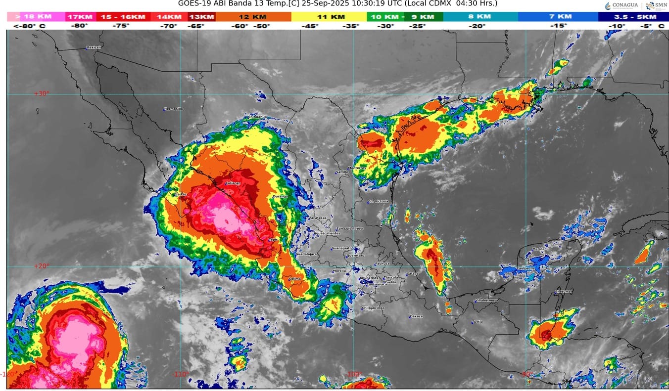 Asimismo, el frente número 4 se extenderá con características de estacionario sobre el norte y noreste del país; interaccionará con un canal de baja presión y originará lluvias fuertes a muy fuertes en las regiones mencionadas. Se prevé un descenso de la temperatura en Coahuila, Nuevo León y Tamaulipas.