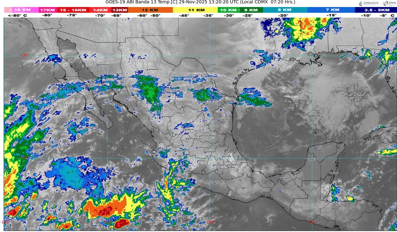 De forma paralela, el nuevo frente frío número 17 ingresará por el norte y noreste, donde interactuará con una línea seca y la corriente en chorro subtropical. Este sistema ocasionará vientos intensos, lluvias aisladas y la posible formación de torbellinos en el norte de Coahuila.