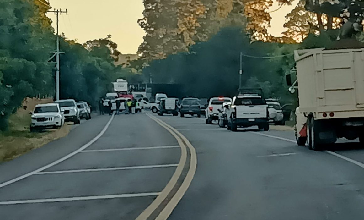 #URUAPAN | Padres de familia del Jardín de Niños Benito Juárez, ubicado en la comunidad de Los Pastores, en Peribán, realizan un bloqueo en la Uruapan-Los Reyes, a la altura del módulo de policía en la comunidad de San Francisco, con la finalidad de exigir el cambio o destitución de una profesora, a quien acusan de maltrato hacia sus alumnos.