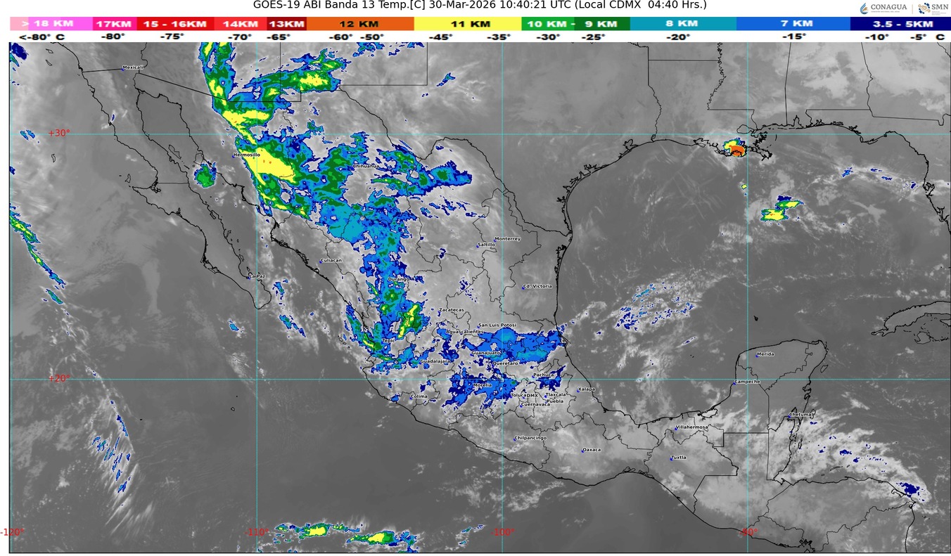A su vez, durante la noche, hay posibilidad de caída de aguanieve en cimas montañosas con altitudes superiores a los 4,200 metros sobre el nivel del mar, del occidente, centro y oriente de México.